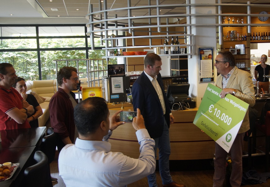 Op 11 juli is bij NDC Den Hommel de winnaar bekend gemaakt. Met een ruime meerderheid van stemmen heeft het idee om het ibis Hotel te verfraaien met een muurschildering van de Strakke Hand gewonnen. Remko Sietsma heeft de symbolische cheque overhandigd aan de directeur van het ibis, Reint van Rooij. Als alles mee zit zal er al op korte termijn begonnen worden met de voorbereidingen. Hou de kale muur in de gaten!